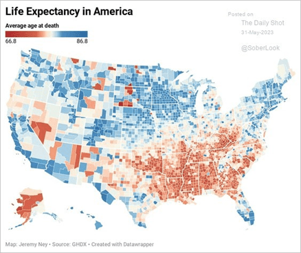 I was surprised to see such a wide dispersion of life expectancies across regions of the US.